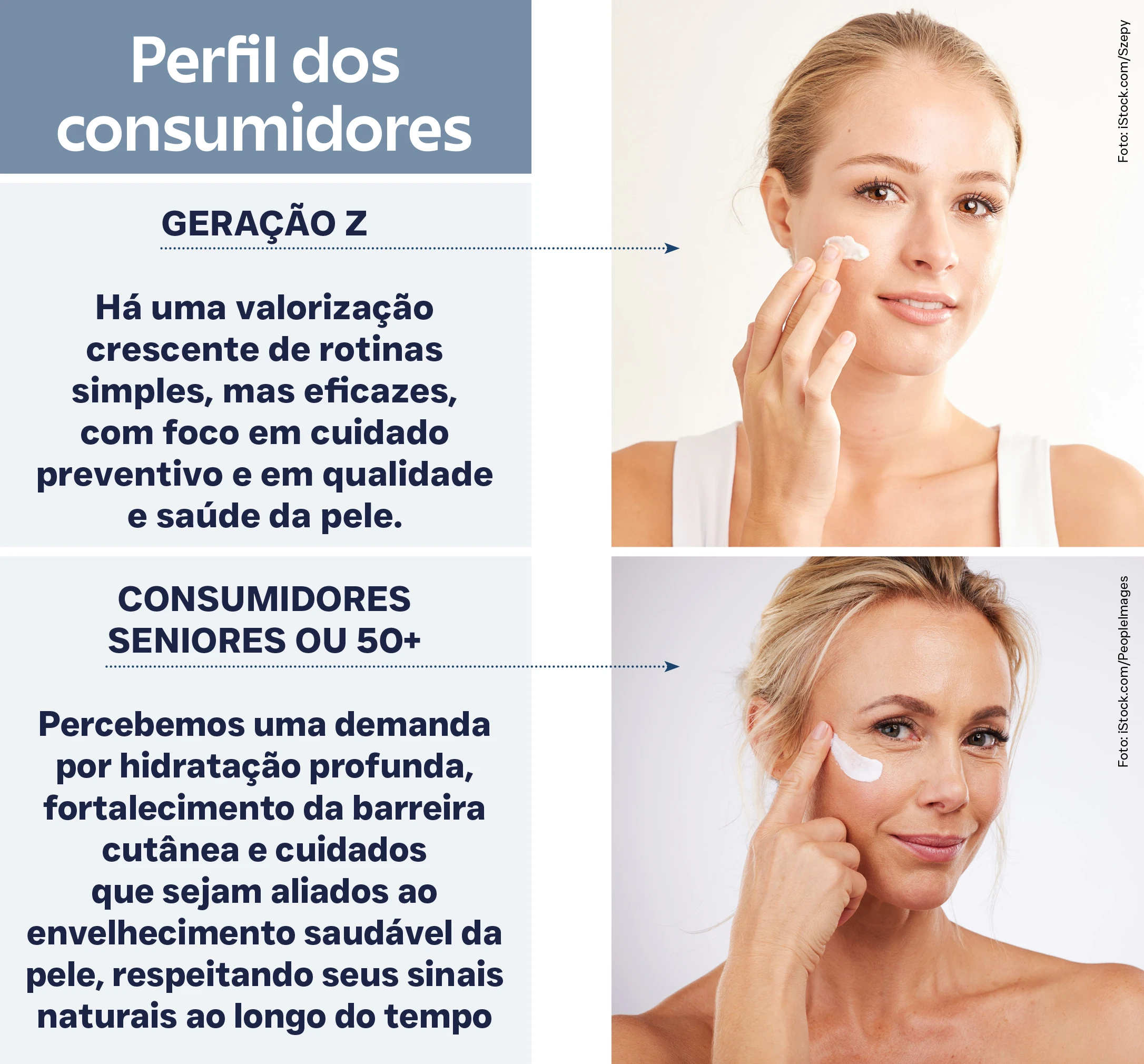Esse crescente interesse em autocuidado é algo extremamente positivo para nós. E quando olhamos esses dois públicos, jovens e seniores, ambos são muito importantes para o mercado, porém tendem a buscar coisas diferentes. Para a Geração Z, há uma valorização crescente de rotinas simples, mas eficazes, com foco em cuidado preventivo e em qualidade e saúde da pele. Foi nesse contexto que trouxemos para o Brasil a linha Cetaphil Healthy Radiance, com foco na tendência do “Glass Skin” e que garante aquele glow na pele, aumentando a luminosidade e ajudando na uniformização. Entre os consumidores seniores, ou acima dos 50 anos, percebemos uma demanda por hidratação profunda, fortalecimento da barreira cutânea e cuidados que sejam aliados ao envelhecimento saudável da pele, respeitando seus sinais naturais ao longo do tempo. Também atenta a essa necessidade, a Galderma trouxe ao Brasil a marca Alastin®, uma linha de produtos que tem como base os peptídeos e possui uma tecnologia exclusiva e patenteada, chamada TriHex®, que estimula a renovação da elastina e colágeno da pele. Ou seja, uma inovação em skincare para regeneração da pele, com propriedades anti-aging para o cuidado completo do rosto, olhos, pescoço e corpo. Assim, seguimos comprometidos em desenvolver soluções completas para diferentes perfis e momentos da vida dos nossos consumidores.