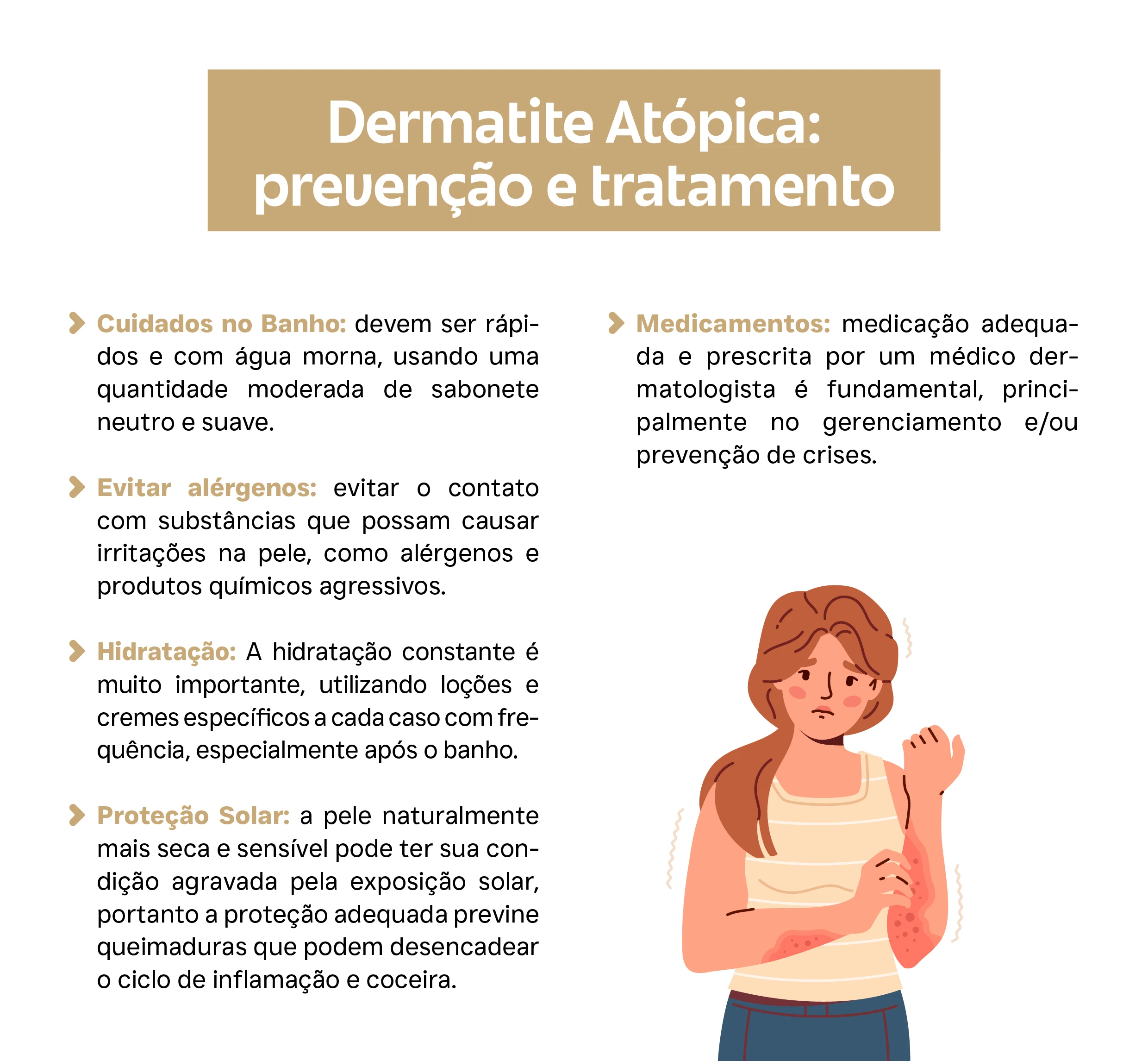 A Dermatite Atópica, condição que resulta de uma interação complexa entre fatores genéticos e ambientais, é uma doença crônica da pele, que mesmo não contagiosa pode afetar intensamente a autoestima e a qualidade de vida do paciente, podendo levar a problemas de sono, ansiedade e depressão. Os principais sinais clínicos são lesões avermelhadas, inflamadas e descamativas, que em uma pele que naturalmente já é mais ressecada e frágil causa coceira e muito desconforto.